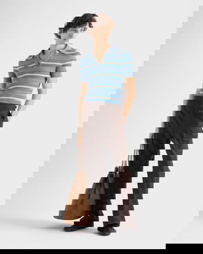 Blue Striped Swan Collared Knitted Bomber Jacket