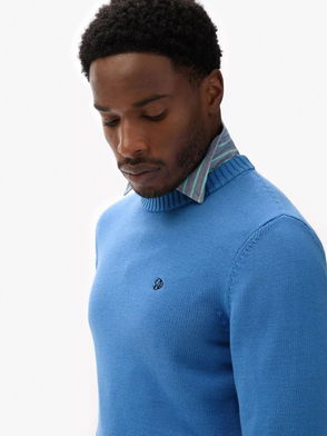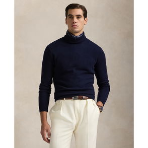 Contrast Trim Roll Neck Jumper, Multi Blue