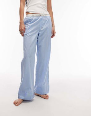 Cotton Poplin Pyjama Bottoms In Blue Stripe