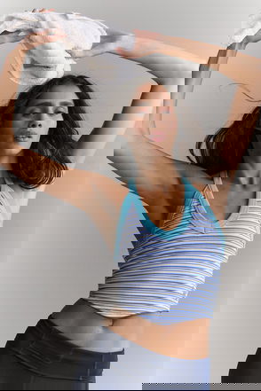 Cotton Modal Rib Unlined Triangle Bra In Blue Stripe