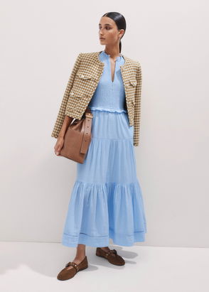 Slub Jersey Smock Bodice Maxi Dress Provence Blue