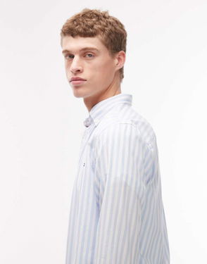 Classic Fit Striped Peached Poplin Shirt
