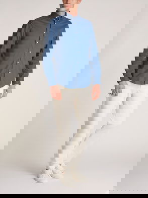 Battery Batwing Logo Slim Fit Chambray Denim Shirt In Mid Blue