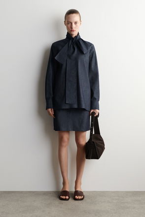 BOW-DETAIL DENIM SHIRT