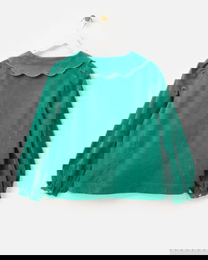 Green Corduroy Scalloped Button Up Collar Shirt