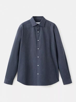Jacquard Cuban-Collar Shirt In Steel Blue