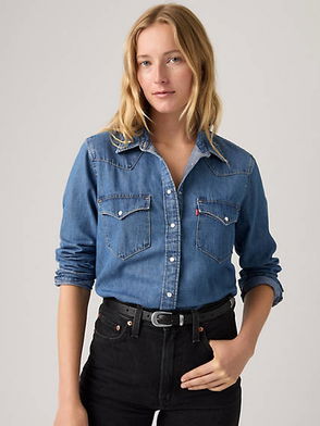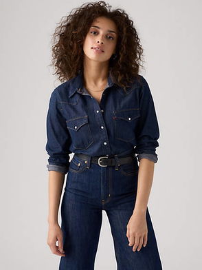 Abercrombie & Fitch Relaxed Denim Western Overshirt In Dark Blue Wash