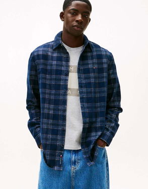 Regular Fit Prince Of Wales Check Corduroy Shirt In Dark Blue