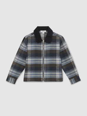 13-14 Yrs Cotton Check Motor Cars Overshirt In Blue