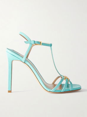 Bibi Bow-Embellished Croc-Effect Leather Sandals