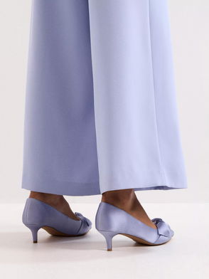 Patchwork Denim Slingbacks With Rhinestone Buckle
