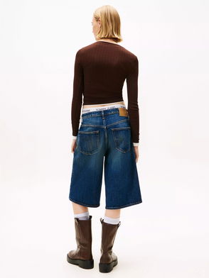 Pinstripe Denim Co-ord Shorts In Light Blue