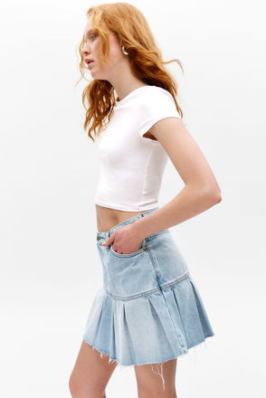 Heather Pure Organic Cotton Denim Skirt, Mid Blue