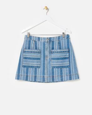 Blue Striped Denim Mini Skirt