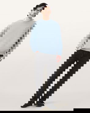 Cotton Crew Neck Sweatshirt, Aqua Blue