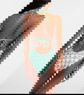 Wanderlust Belted Embellished Scalloped Printed Swimsuit