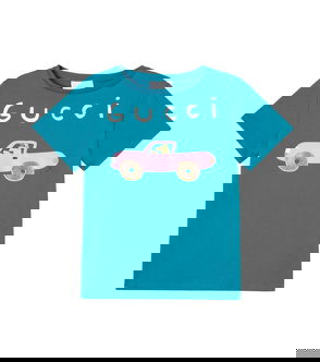 Cotton Ribbed-Neck Oversized T-Shirt In Blue