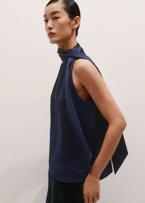 Silk Satin Halterneck Top + Tie Intense Evening Blue