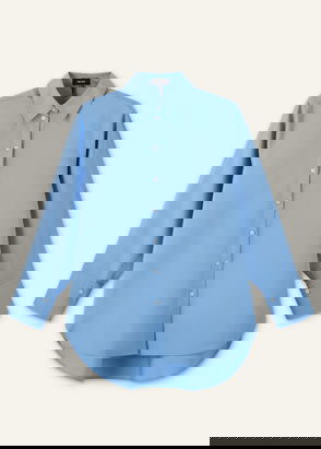 Supersoft Cotton Poplin Oversized Wide-Sleeve Shirt Chambray Blue