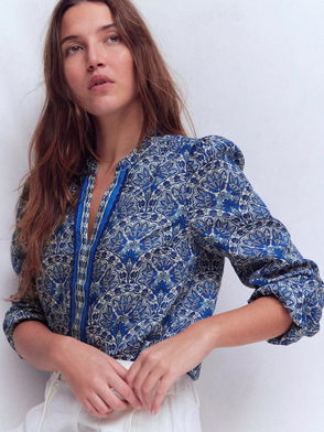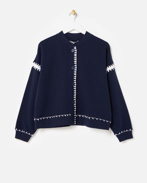Navy Blue Cherry Embroidered Lined Knitted Jacket