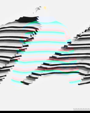 Multicoloured Striped Collared Button Up Knitted Cardigan