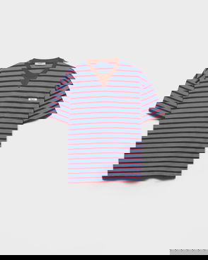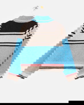 Brown & Blue Striped Ribbed Crew Neck Knitted Cardigan