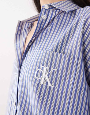 Jeans Embroidery Logo Shirt In Blue Stripe