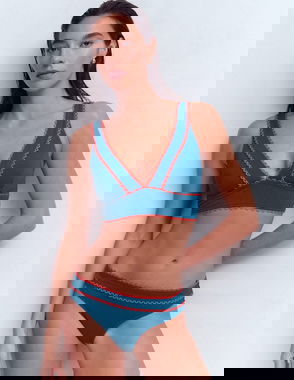 Mykonos Deep V Bikini Top-Navy, Rhythmic Wave