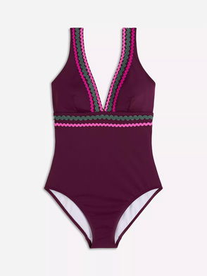 Porto Ric Rac Trim V-Neck Swimsuit, Chocberry