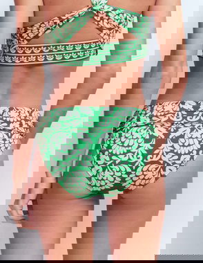 Mykonos Deep V Bikini Top-Rich Emerald, Ornate Floret