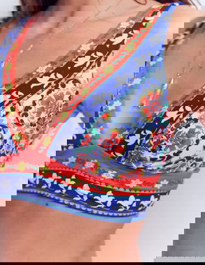 Mykonos Floral Deep V-Neck Bikini Top, Multi