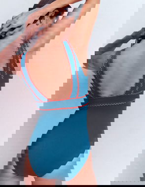 Porto Geometric Floral V-Neck Swimsuit, Blue, Terrace