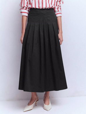 Valentina Cotton Blend Pleated Midi Skirt