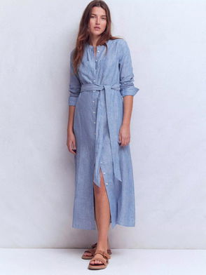 Mollie Pure Linen Shirt Midi Dress, Chambray