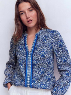 Rhea Floral Trim Detail Shirt, Blue