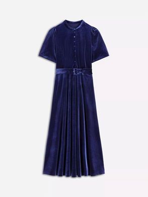 Kate Velvet Puff Sleeve Button Neck Midi Shirt Dress