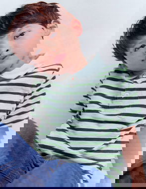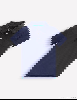 Slub Polo Shirt-Misty Blue/ Pine Green