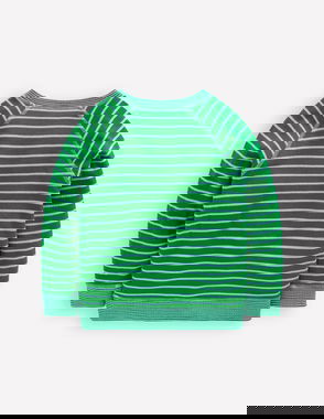 Reversible Long Sleeve T-Shirt-GREEN TAMBOURINE / BLUE