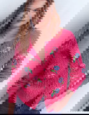 Liv Embroidered Cable Cardigan-Oatmeal Melange