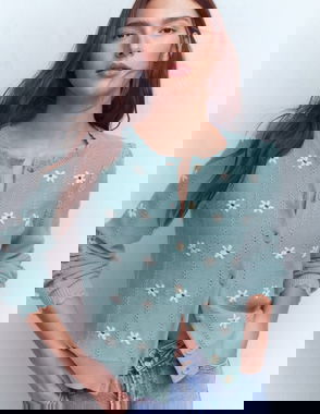Valeria Crochet Trim Cardigan-Seamist Blue, Embroidery