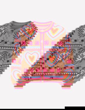 Abi Jacquard Cardigan-Camel Melange, Hearts