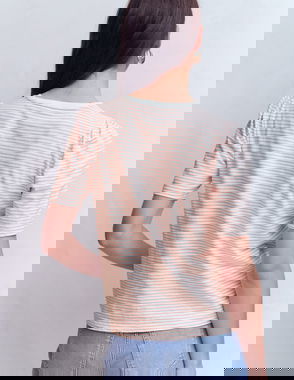 Pleat Sleeve T-shirt-Formica Pink And Ivory Stripe