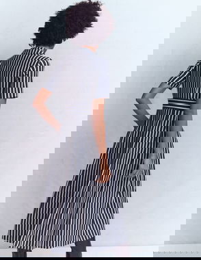 Aria Collared Jersey Dress-Navy, Ivory Stripe