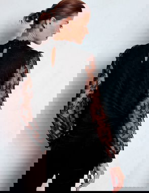 Broderie Ruffle Jersey Shirt-Plum Jam