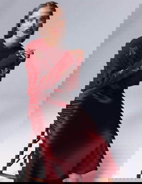 Alexandra Jersey Midi Dress-Black, Tortoise Shell Dot