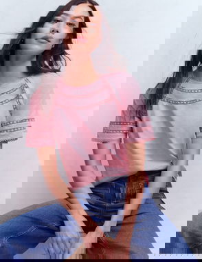 Valeria Crochet Trim Jumper-Rose Pink, Embroidery