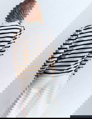 Ruffle Collar Mariner-Ivory And Navy Stripe