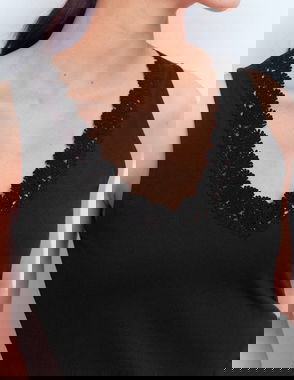 Flora Lace Trim Supersoft Vest-Black Beauty