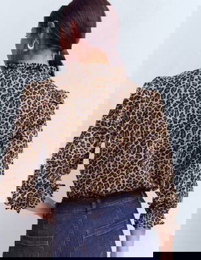Emily Pom Detail Ruffle Shirt-Camel, Cheetah Pop