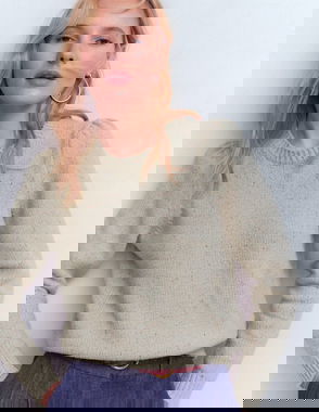 Lucy Relaxed Cotton Jumper-Ivory, Brown